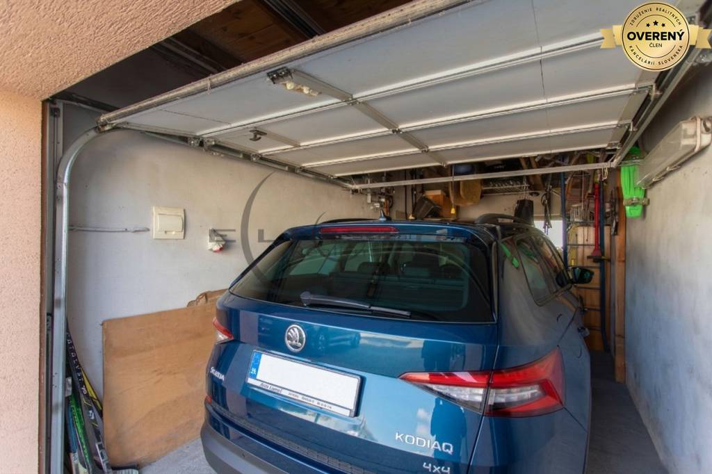 - garáž pre jedno osobné auto s elektrickou bránou na diaľkové ovládanie, pochôdzna povala s úložným priestorom nad garážou