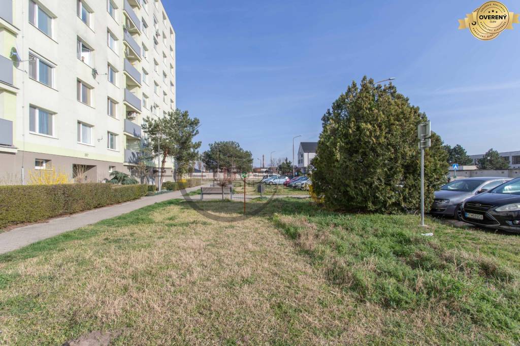 Výmera bytu je 35 m2. K dispozícii sú spoločné priestory kočikárne a práčovne a možnosť využitia uzamykateľnej loggie na medziposchodí, ktorá slúži súčasnému majiteľovi bytu.