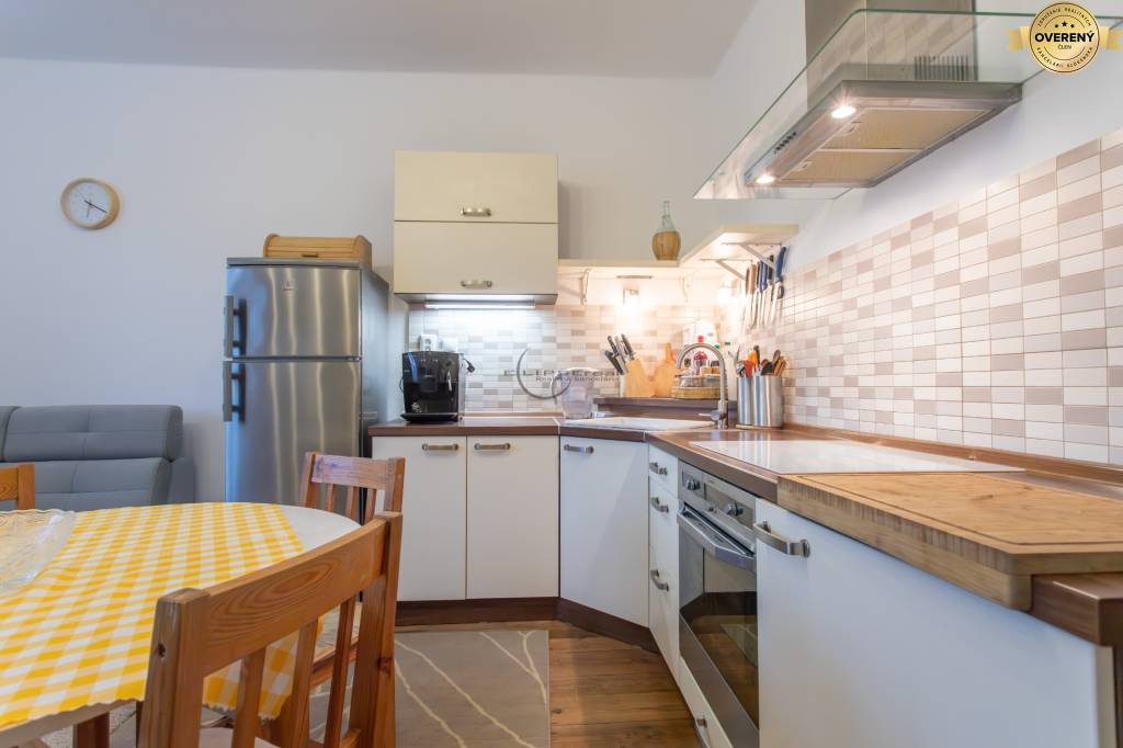Kuchyňa je vybavená elektrickou varnou doskou, elektrickou rúrou, kávovarom, drezom, digestorom, chladničkou s mrazničkou a drobným kuchynským zariadením. V obývačke je k dispozícii TV a v technickej miestnosti automatická práčka.