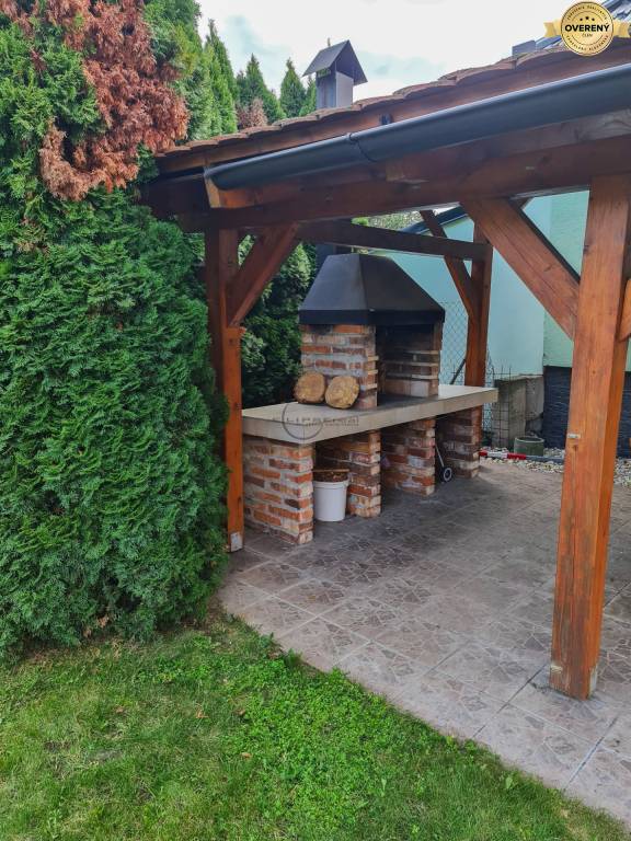 V záhrade sa nachádza drevený altán s vonkajším murovaným krbom a sedením, ktoré v letných mesiacoch poskytuje oddychovú a relaxačnú zónu s výhľadom do peknej, udržiavanej záhrady s parkovou úpravou a s ovocnými stromami.